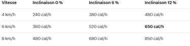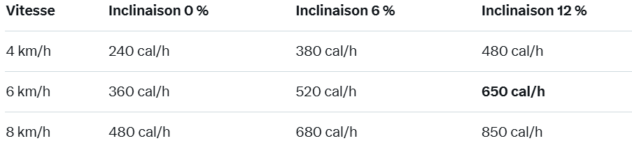 Tu brûles 400 à 650 calories/heure selon l’inclinaison